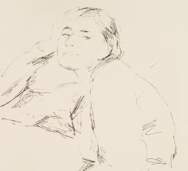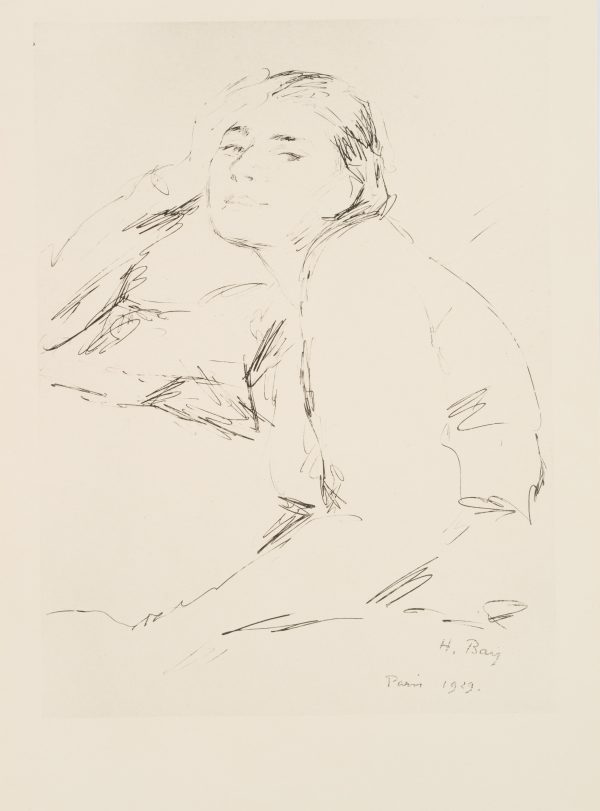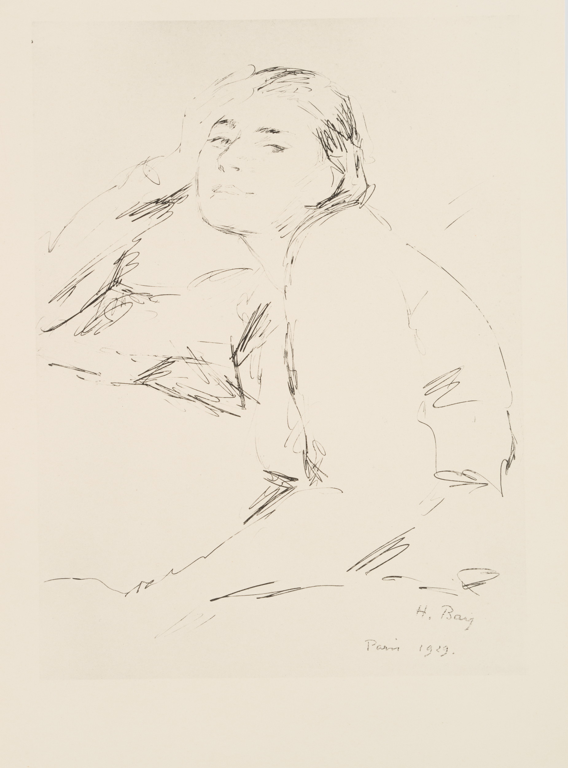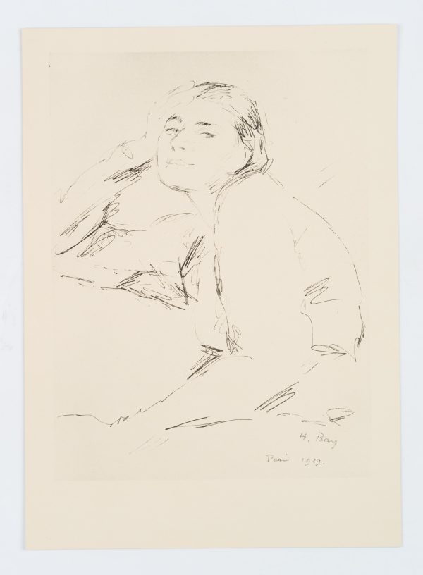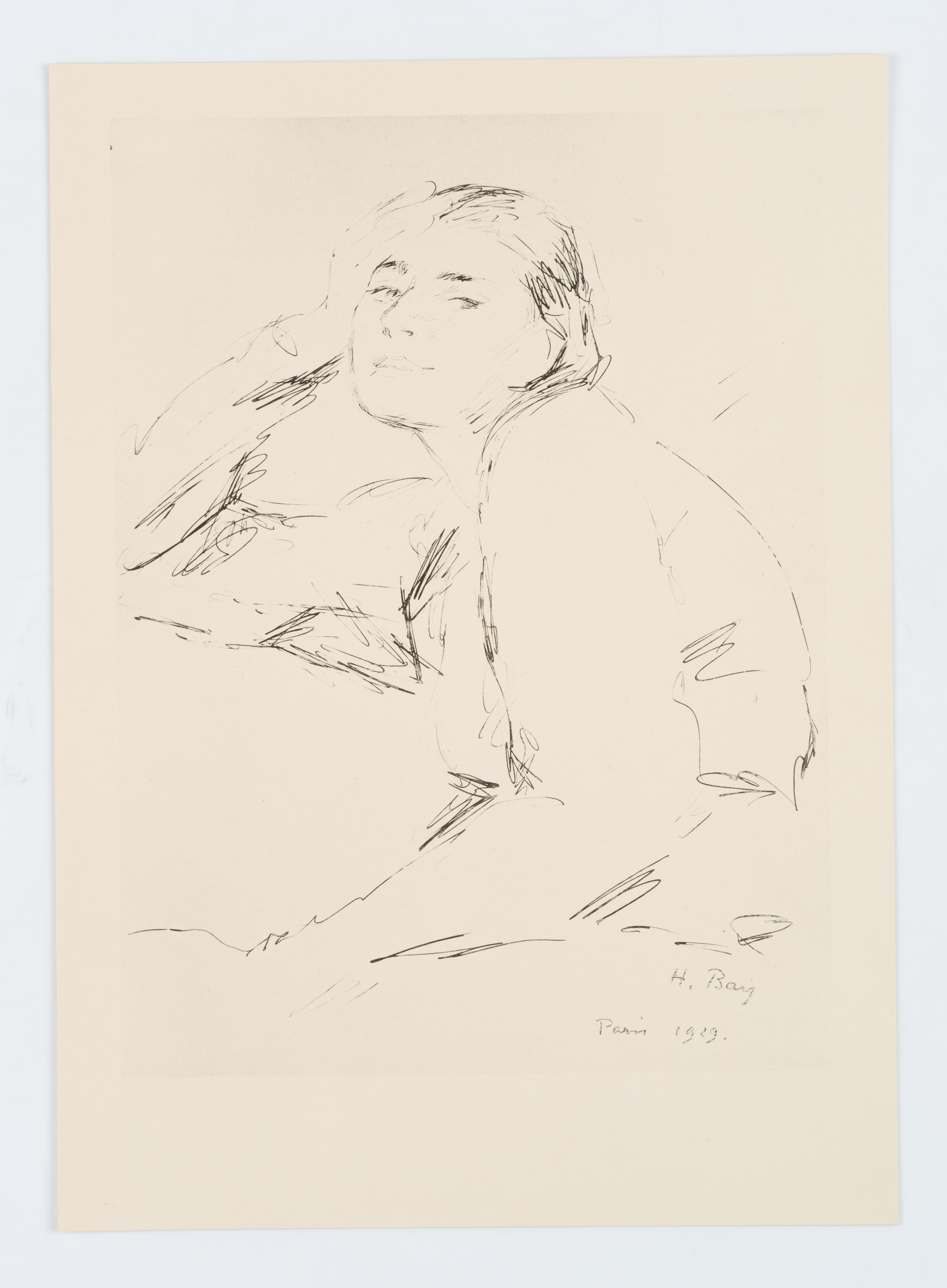 Hanni Bay (1885 Belp – 1978 Bern), Figure study of a young woman sitting as a half figure, resting her head on her right hand, 1929, Reproduction