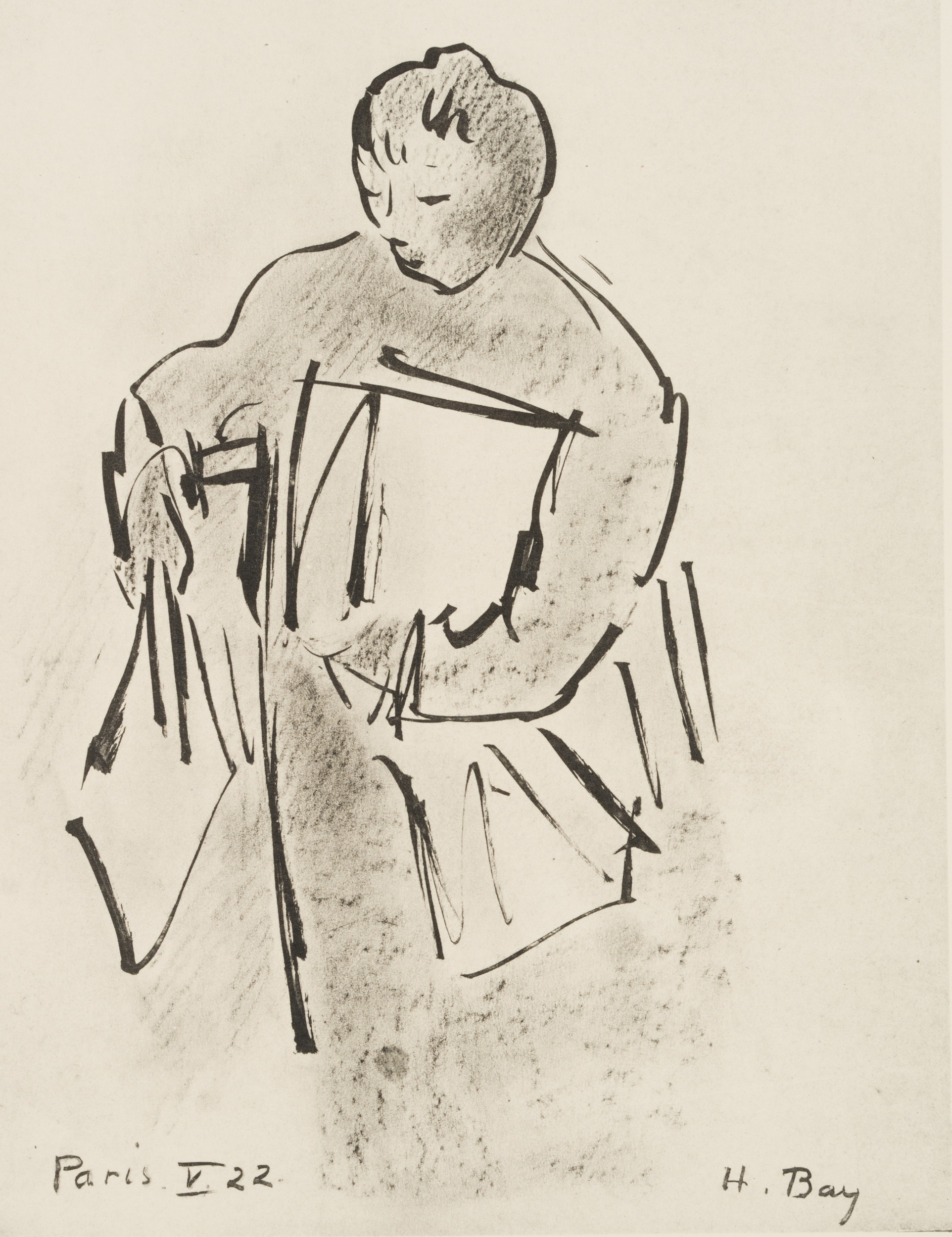 Hanni Bay (1885 Belp – 1978 Bern), Figurenstudie. Künstler mit großen Mappen unter dem Arm, um 1922, Reproduktion
