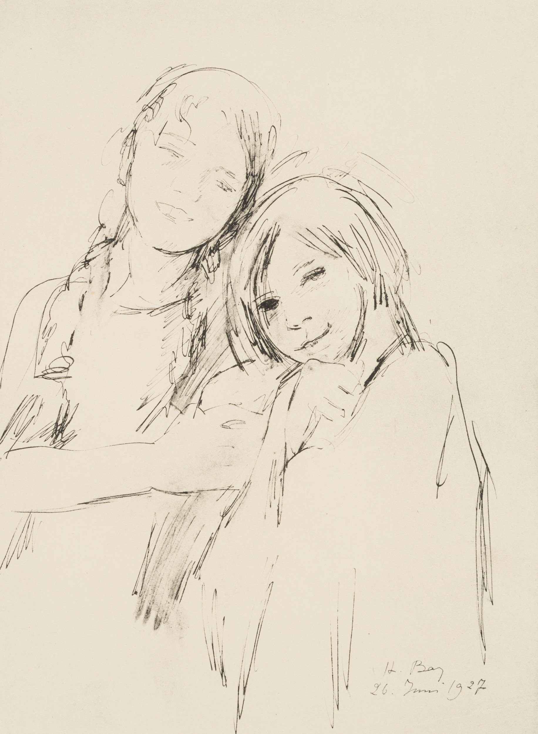 Hanni Bay (1885 Belp – 1978 Bern), Portrait of two children embracing and looking towards the viewer, 1927, Reproduction