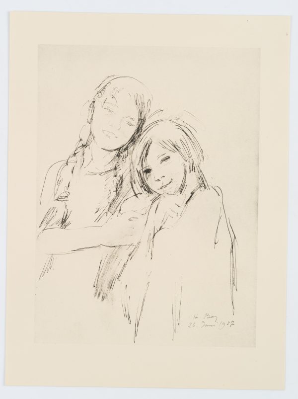 Hanni Bay (1885 Belp – 1978 Bern), Portrait von zwei Kindern sich umarmend, zum Betrachter schauend, 1927, Reproduktion