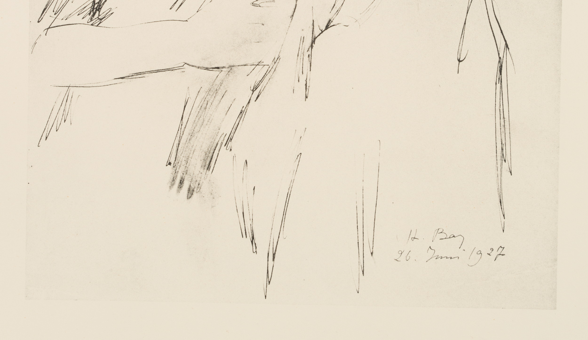- Inscription: Lower right signed in the printing plate: “H. Bay”. Lower right dated: “26. Juni 1927”.