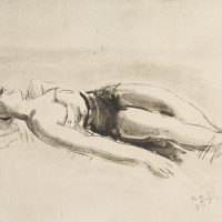 - Beschreibung: Zeichnung einer liegenden Frau, ganzfigurig als Lichtdruck.