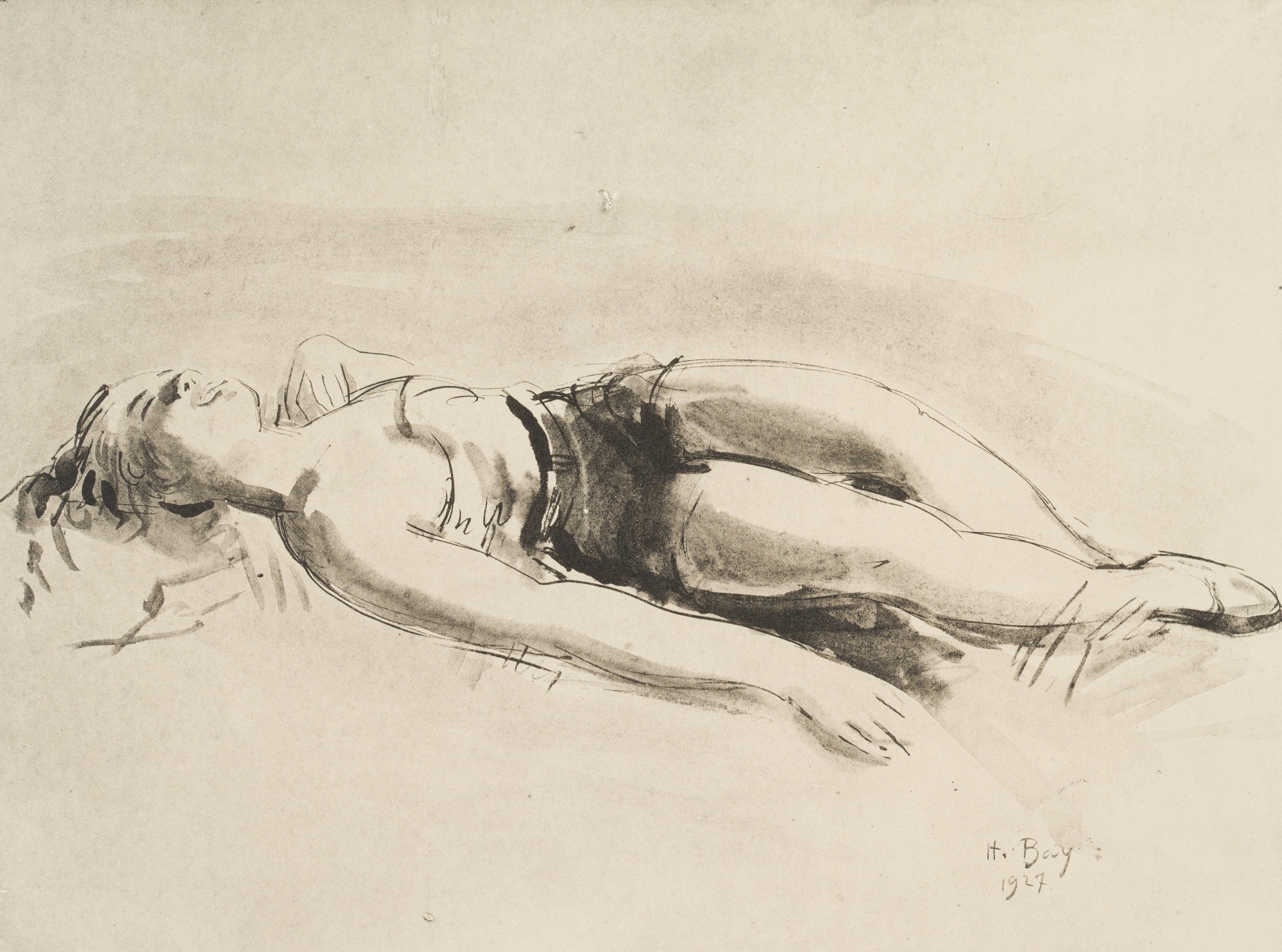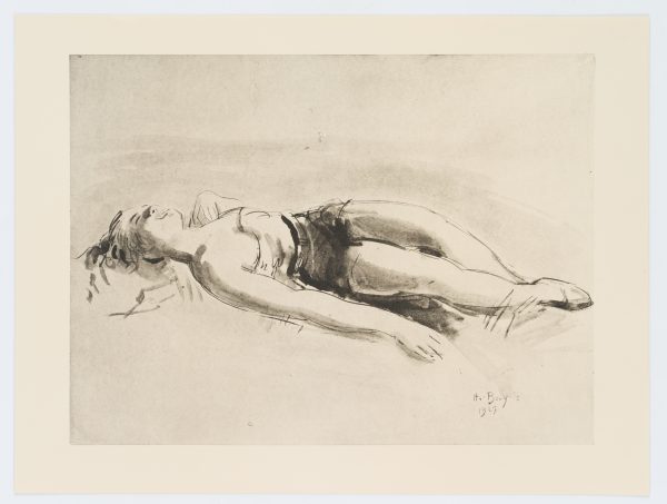Hanni Bay (1885 Belp – 1978 Bern), Sunbather lying in the sand on the beach, 1927, Reproduction