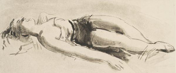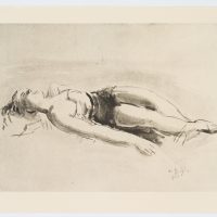 - Description: Drawing of a reclining woman, full figure as collotype.