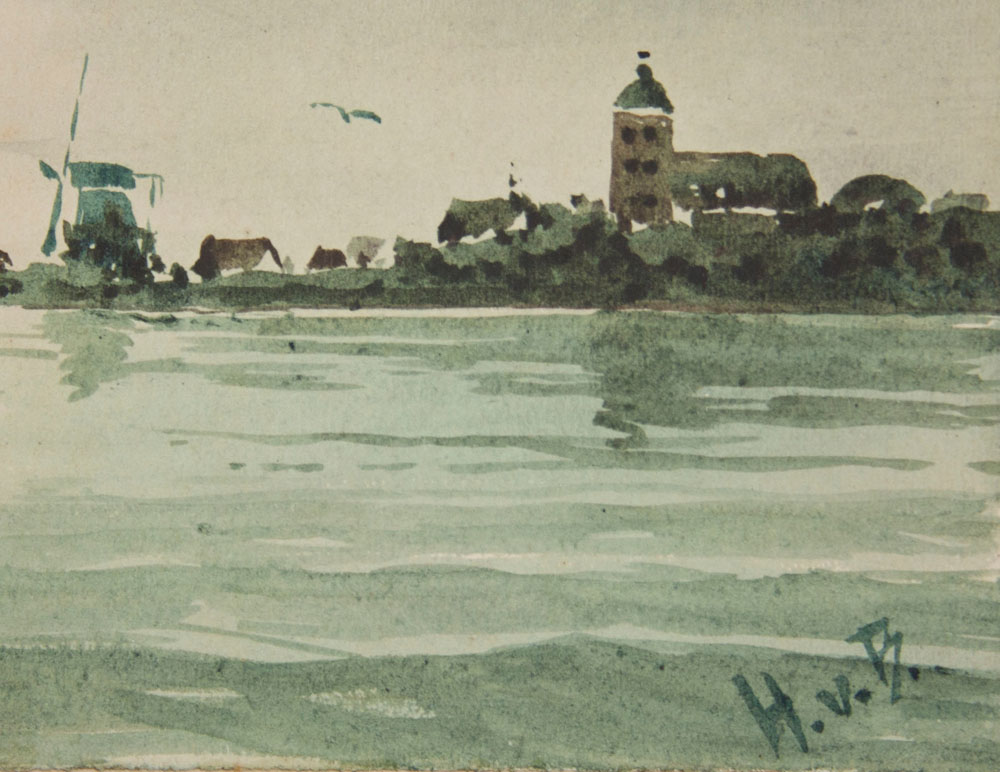 Ortsbezeichnet, monogrammiert und in Bleistift signiert.