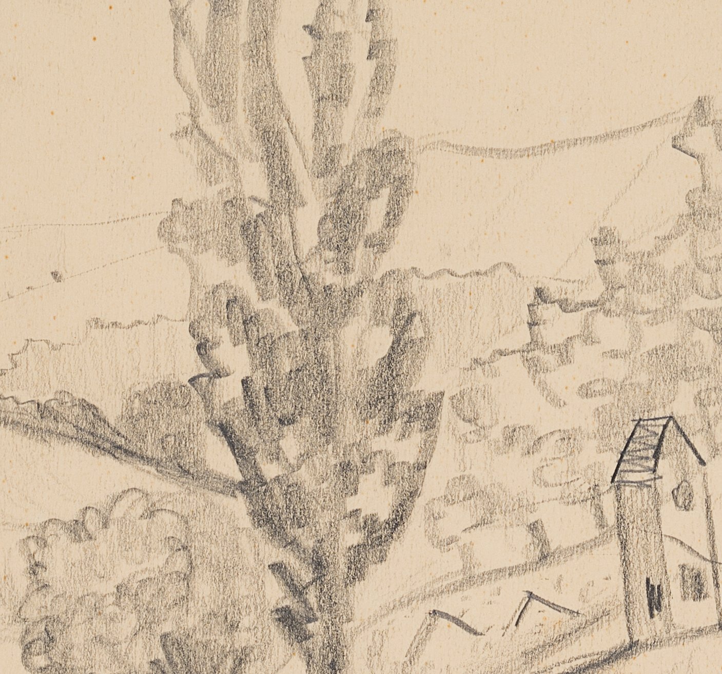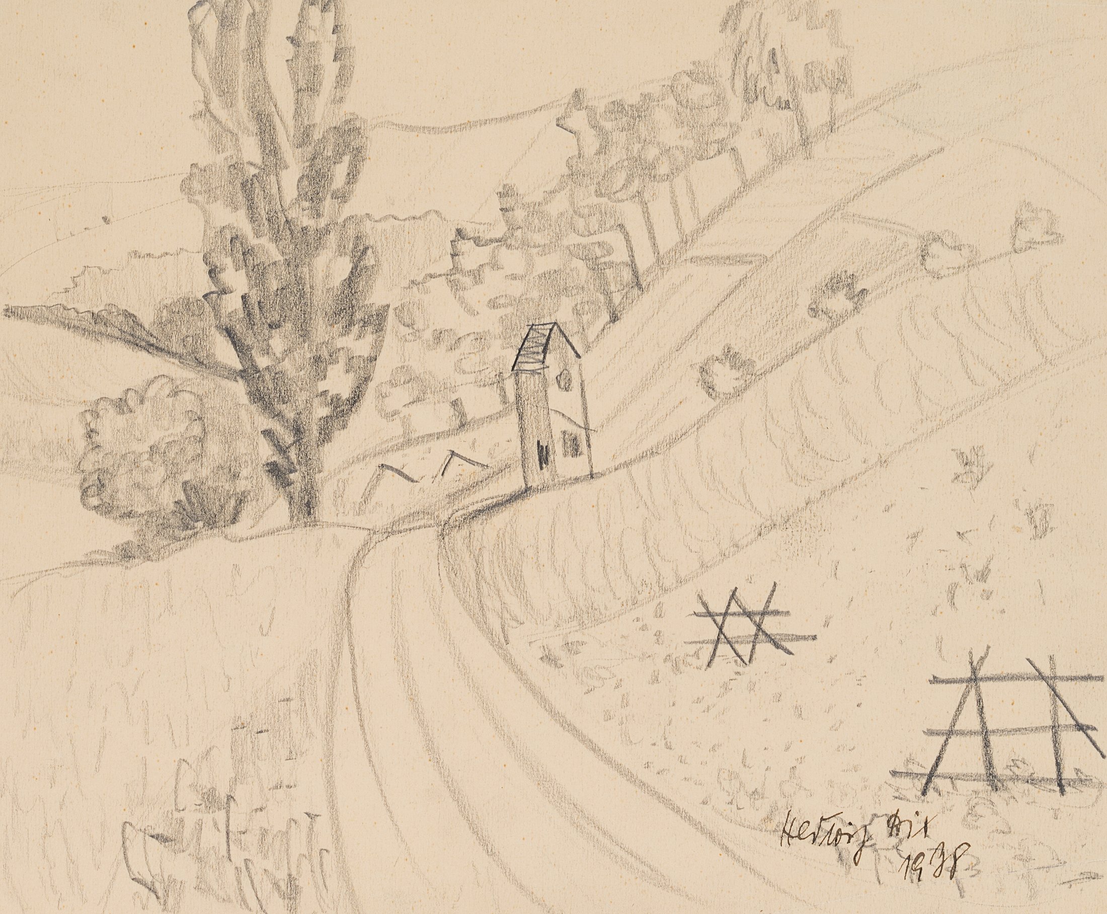 Hedwig Dix (1898 Untermhaus – 1980 Gera), Fahrweg mit Andachtsstätte, 1938, Bleistift