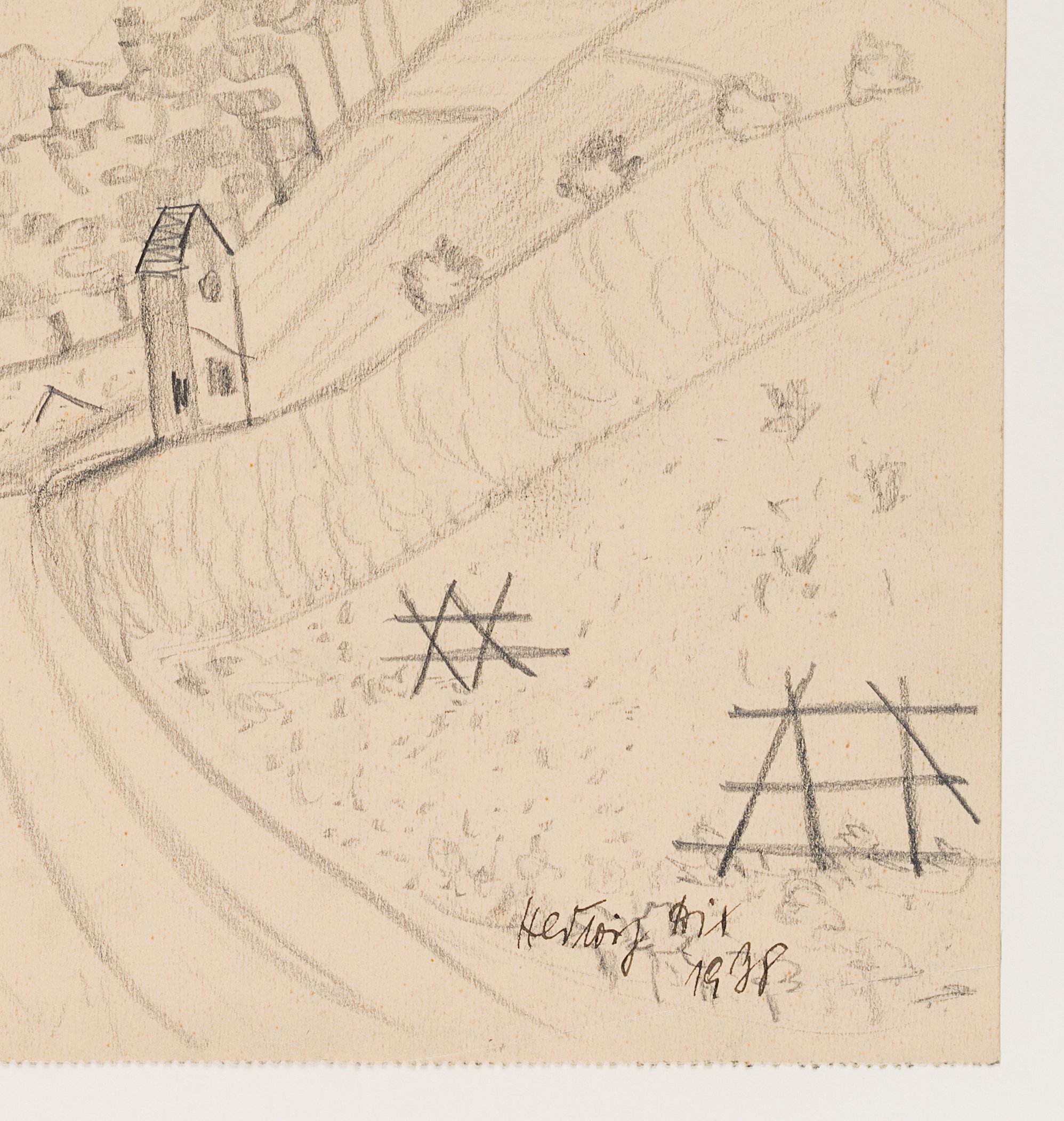 Hedwig Dix (1898 Untermhaus – 1980 Generate), Roadway with devotional site, 1938, Pencil
