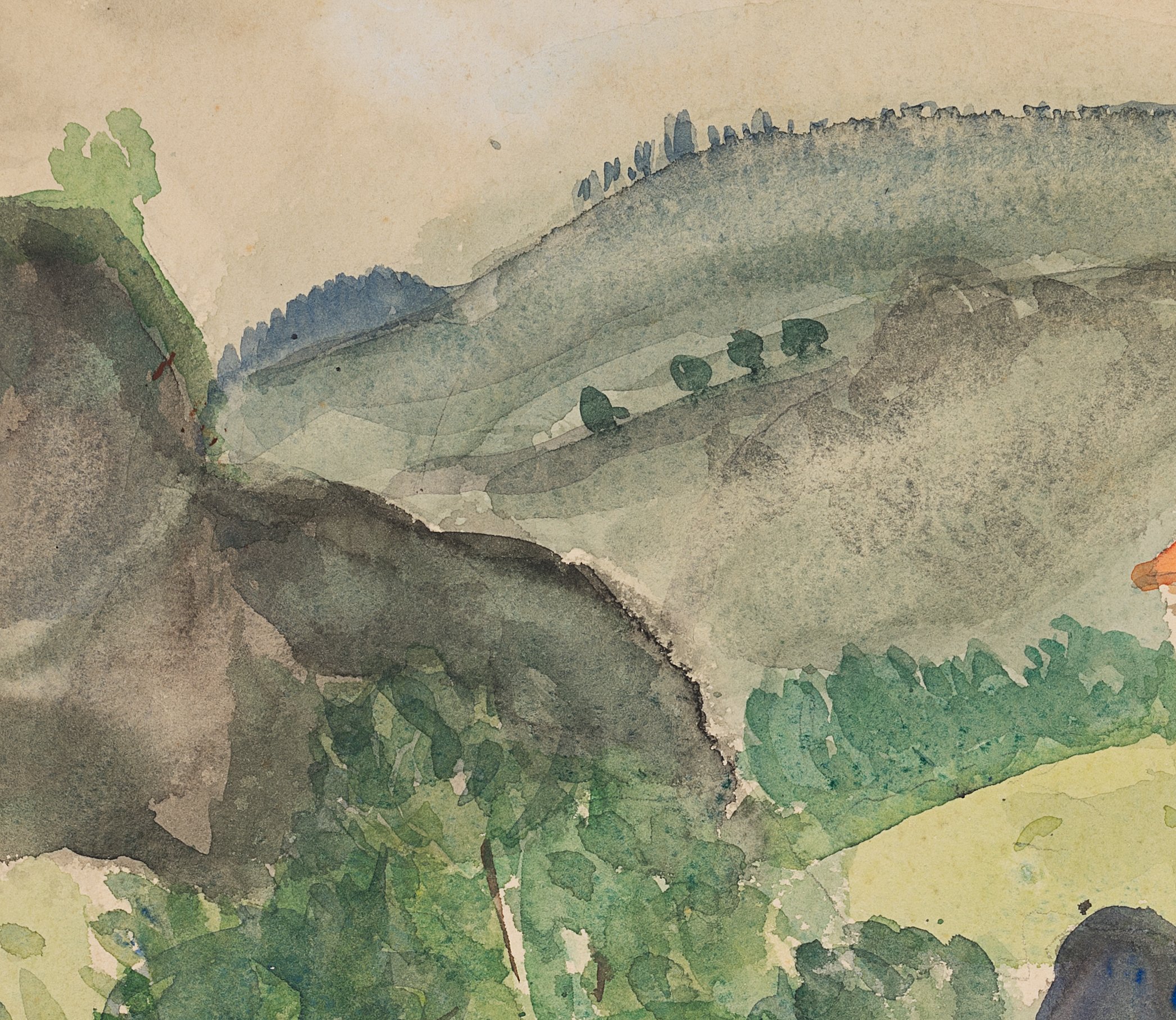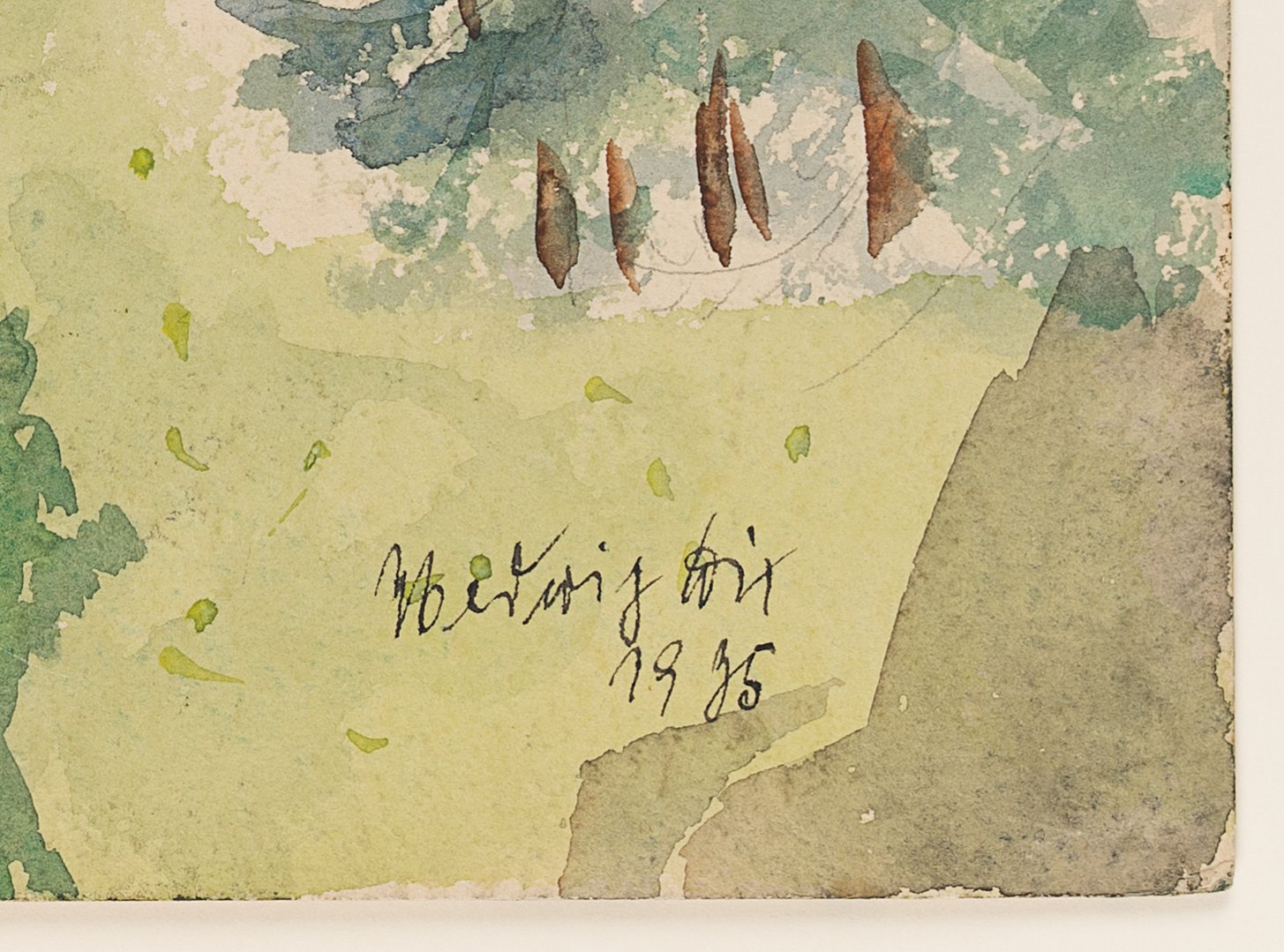 - Description: Very nice landscape watercolour by Hedwig Dix, the sister of Otto Dix. With the stamp of the Gerar painter Alexander Wolfgang (1894-1970) on the verso. He had married Hedwig Dix in 1939. In the 1930s Hedwig Dix belonged to the circle of friends that her brother Otto Dix formed with the Gera painters Alexander Wolfgang, Alfred Ahner and Kurt Günther, who were friends of him. During these years she repeatedly joined the artists on painting trips and hikes. She was particularly influenced by Alexander Wolfgang, to whom she had been married since 1939. Like Wolfgang, she was a landscape painter.