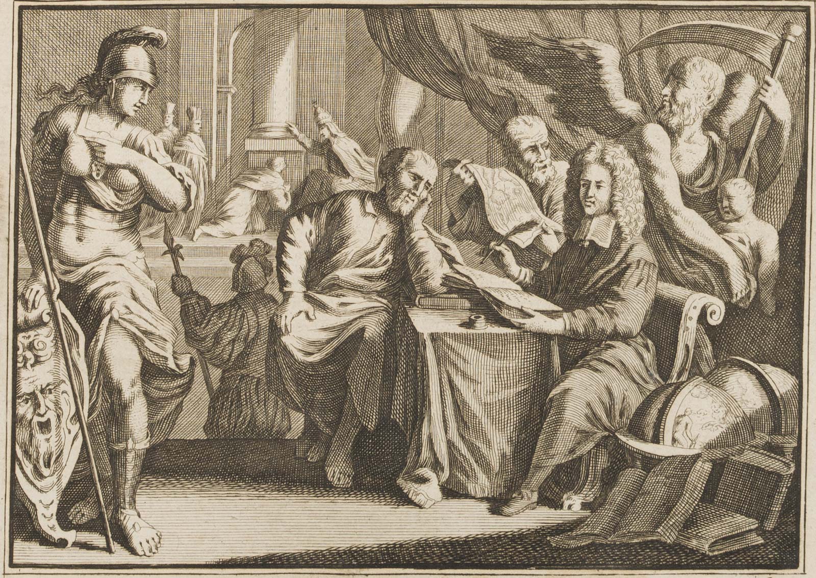 H. Eland (18th century), Title page ‘Profeßoris Batavi Primarii Operum Tomus Secundus’ with copper engraving, 1703, 1703, Copper engraving