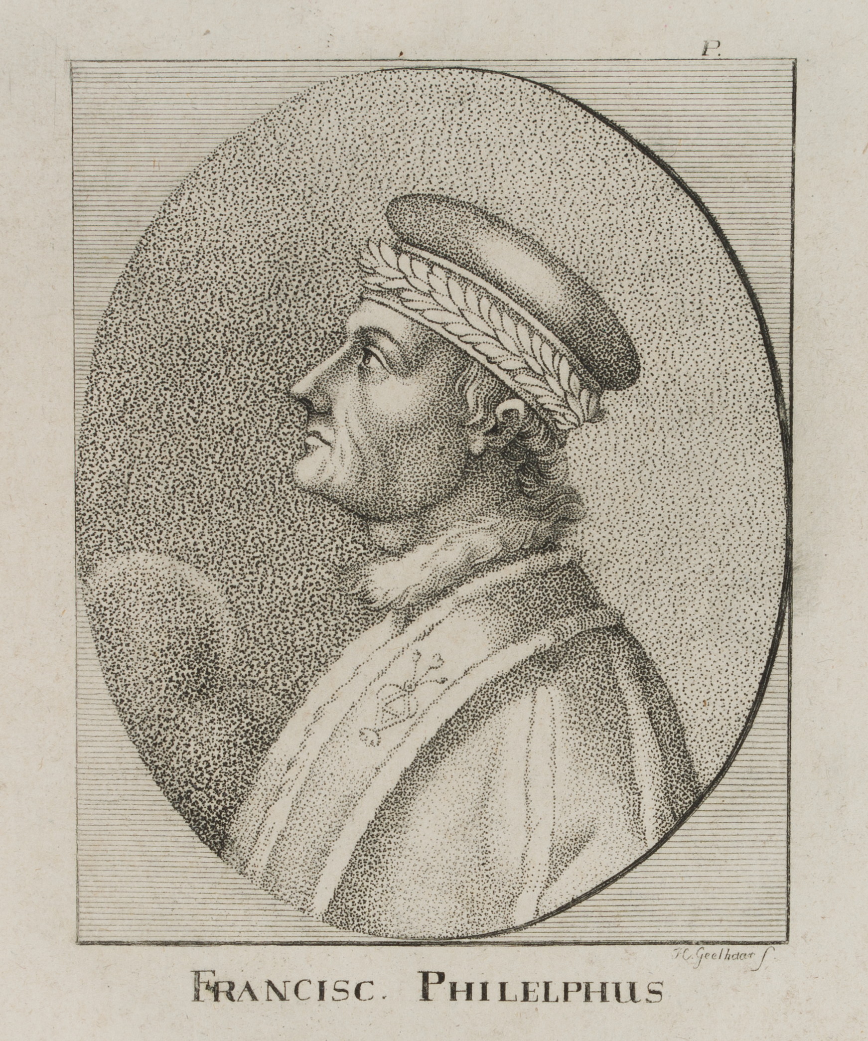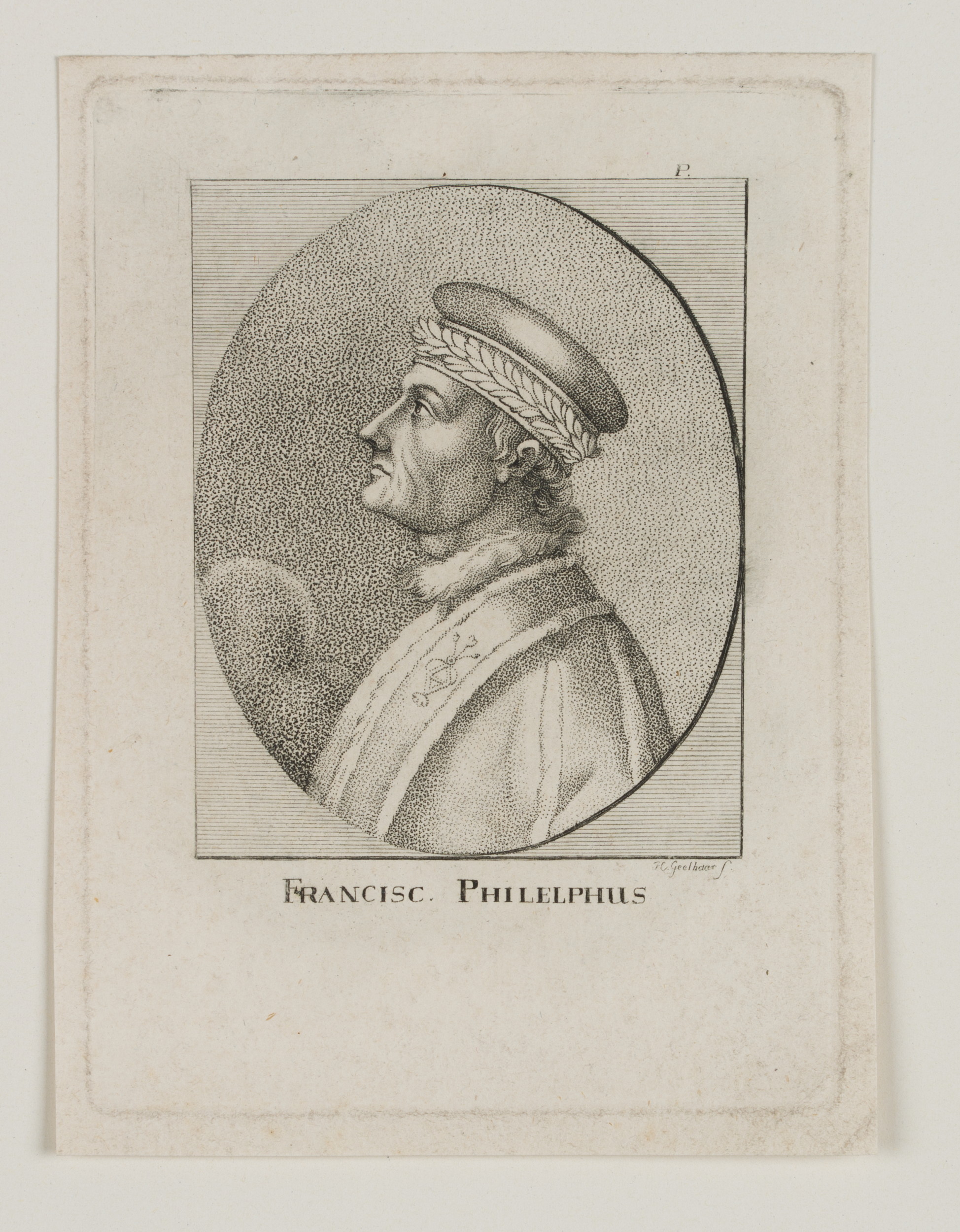 - Bezeichnung: Unten rechts im Druck signiert: “H. Geelheter f.”. Unten im Druck bezeichnet: “Francisc. Philelphus”.