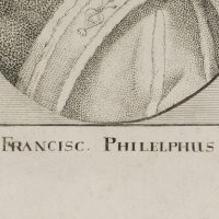- Inscription: Lower right signed in the printing plate: “H. Geelheter f.”. At the lower part inscribed in the printing plate: “Francisc. Philelphus”.