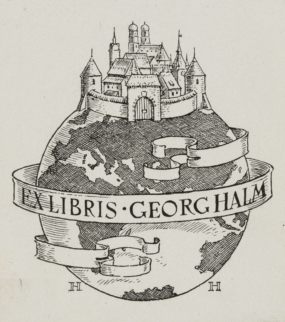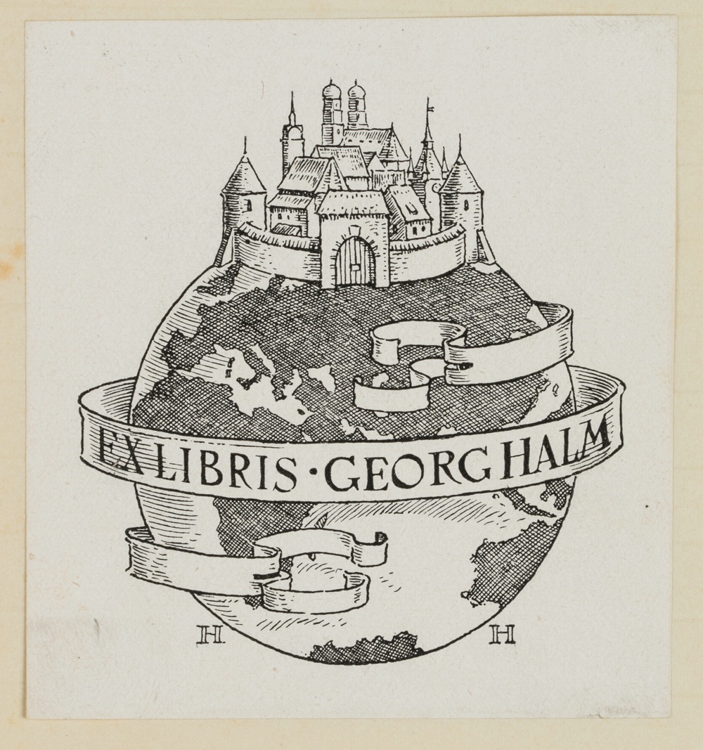 Hans Halm (19. Jahrhundert), Exlibris des Georg Halm mit Ansicht München, um 1915, Holzstich