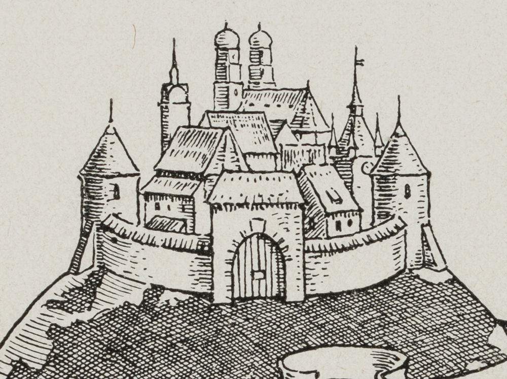 Hans Halm (19th century), Bookplate of Georg Halm with view Munich, c. 1915, Wood engraving