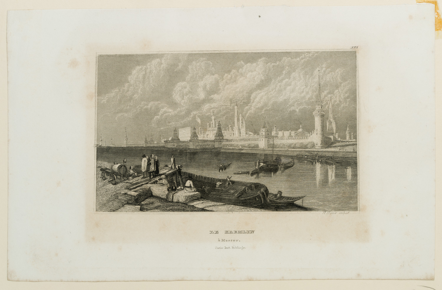 • Inscription: Signed “H. Herzer sculpsit” below the print on the right. Below titled: “LE KREMLIN à Moscow. Numbered upper right: “XVI”.