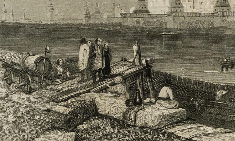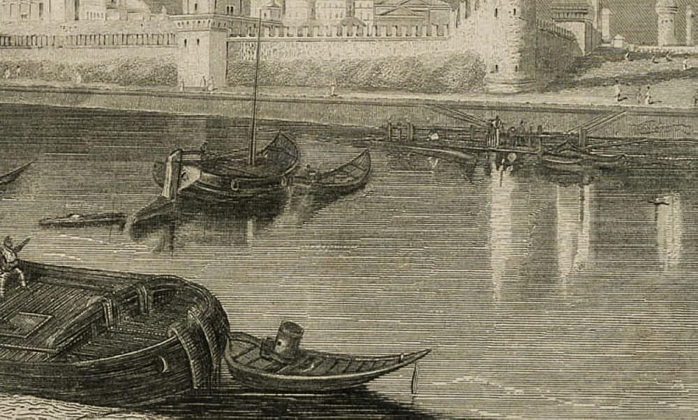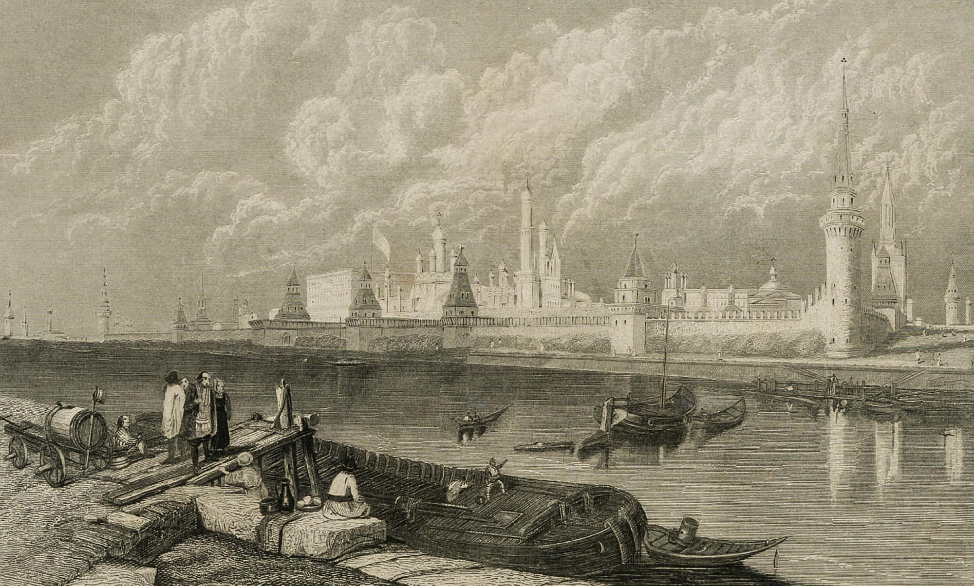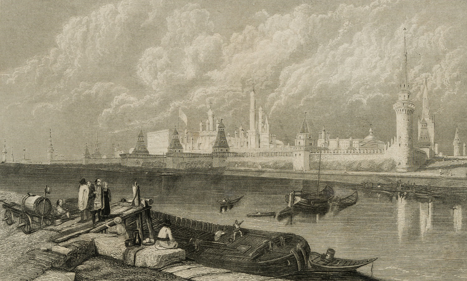 H. Herzer (19th century), River landscape, Moskva with Moscow Kremlin in the distance, 19th century, Steel engraving
