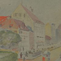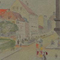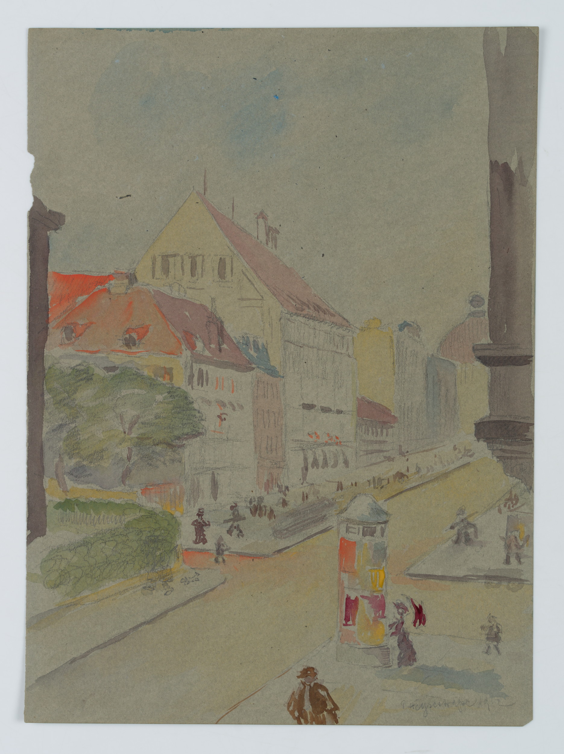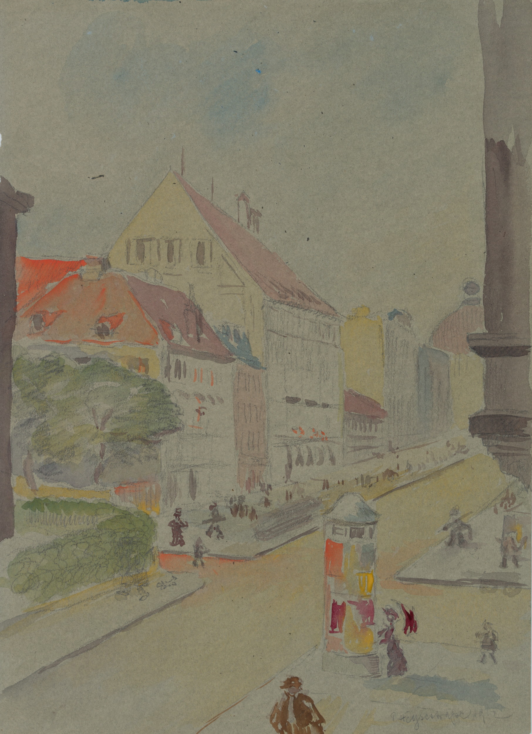 Hans Hirt (1877 Uelzen – before 1962 ), Window view of Paul-Heyse Strasse in Munich, 1912, Watercolor