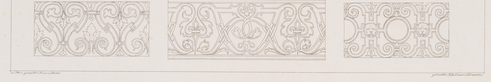 - Inscription: Signed below left “in Stein graviert v. Hummitzsch” and on the right “gedruckt v. L. Zöllner in Dresden”,