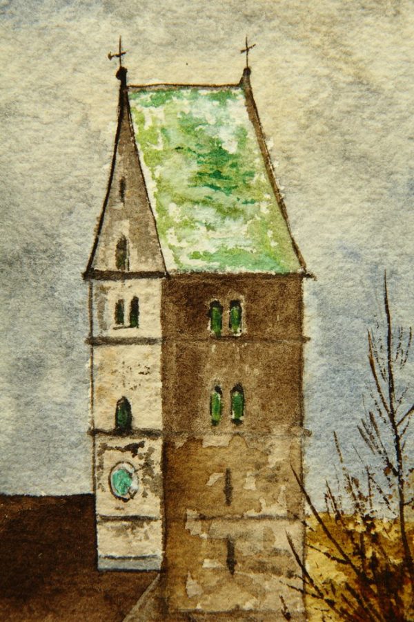 - Description: Atmospheric watercolour on strong paper. Work of the amateur artist Helene Kraft, studied at the art school in Weimar around 1900.