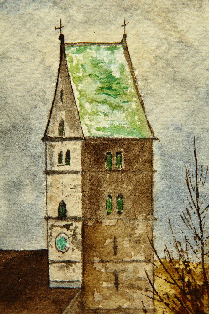 - Beschreibung: Stimmungsvolles Aquarell auf festem Papier. Werk der Amateurkünstlerin Helene Kraft, studierte um 1900 an der Kunstschule Weimar.