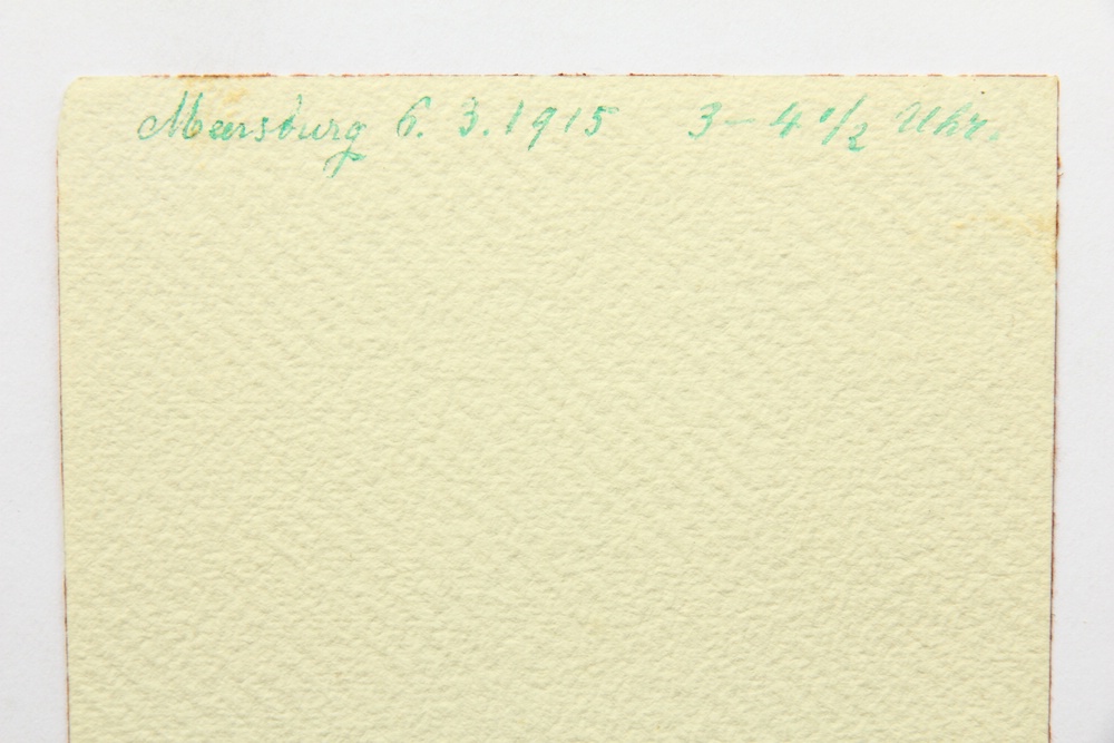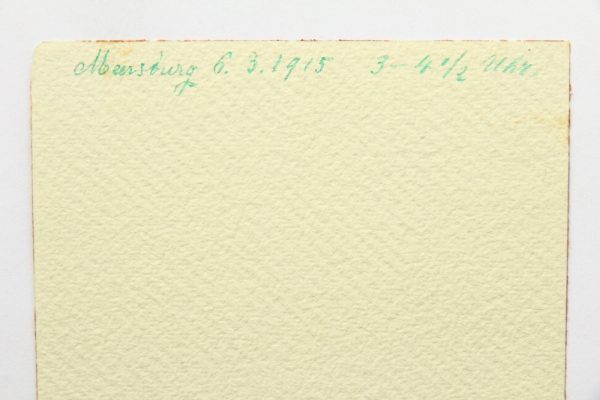 - Bezeichnung: Unten rechts in der Darstellung mit dem Monogramm der Künstlerin signiert. Rückseitig mit Tusche auf den 06. März 1915 datiert und bezeichnet.