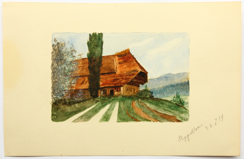 Helene Kraft (1879 Alsace – 1934 ), Black Forest farm, Rippoldsau, 1919, Watercolor