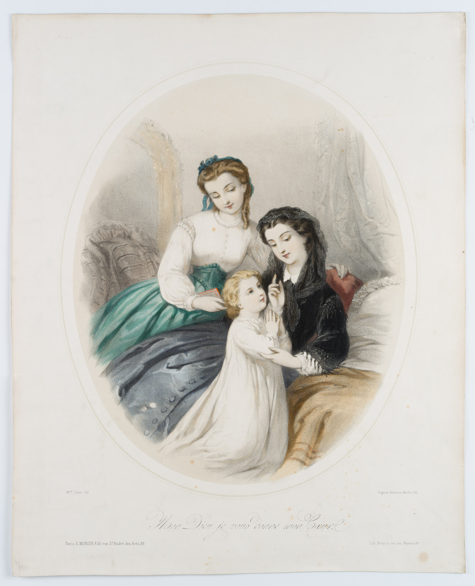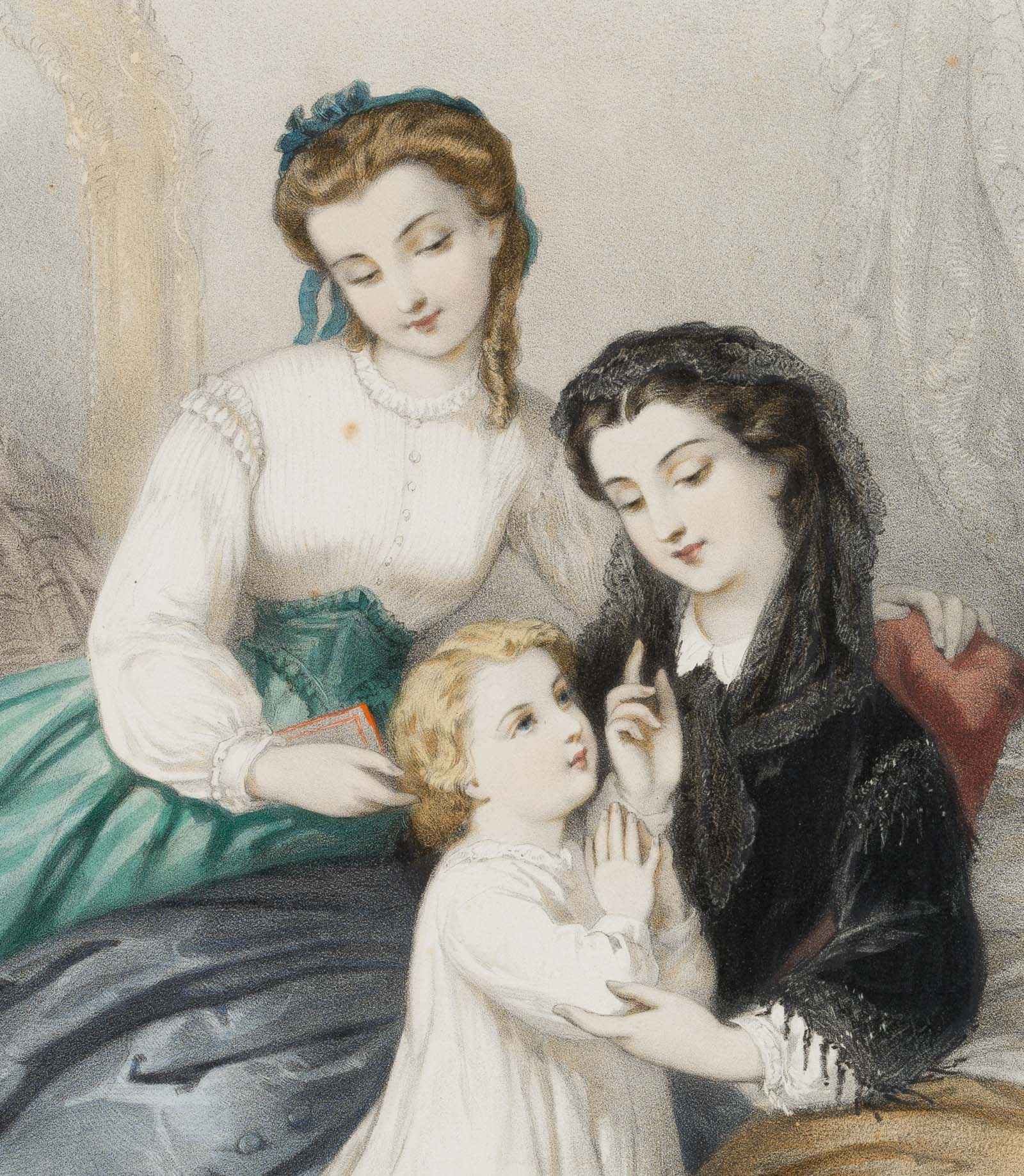 Héloise Leloir (1809 – 1892 ), Biedermeierliche Frömmigkeit, Damen mit Kinde, 19. Jahrhundert, Lithographie
