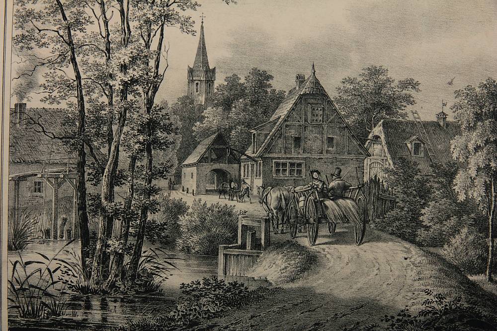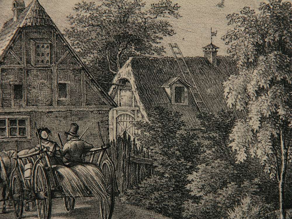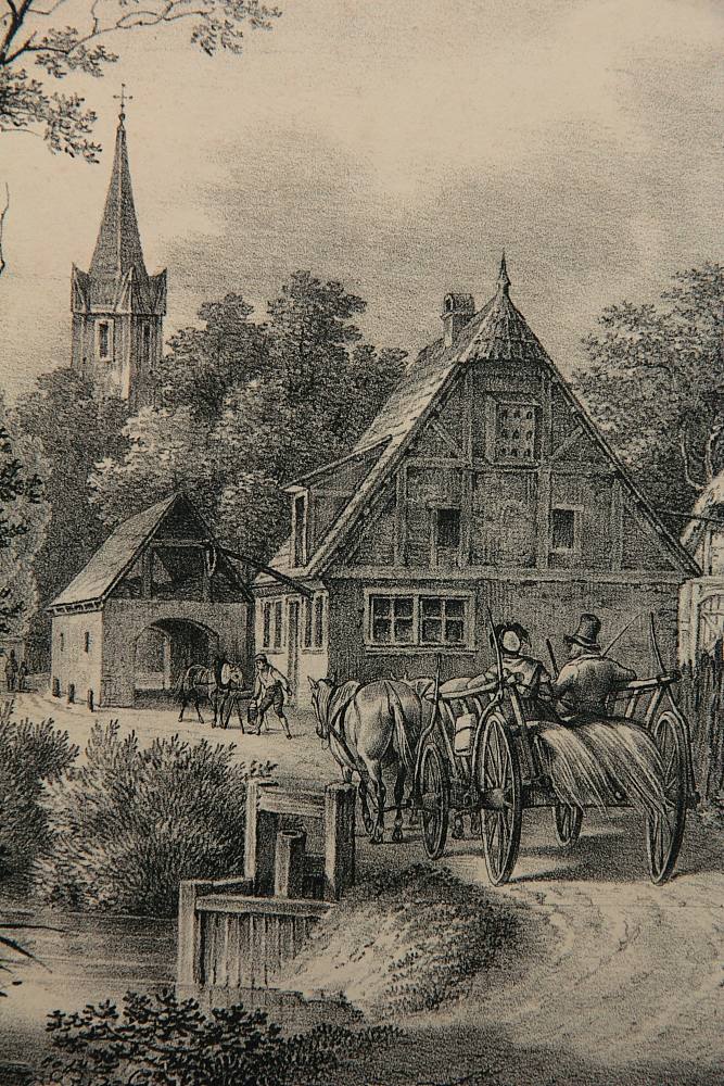 - Inscription: Signed in stone below the depiction. Additionally titled “Die Einfahrt in’s Dorf.” and numbered above the depiction.