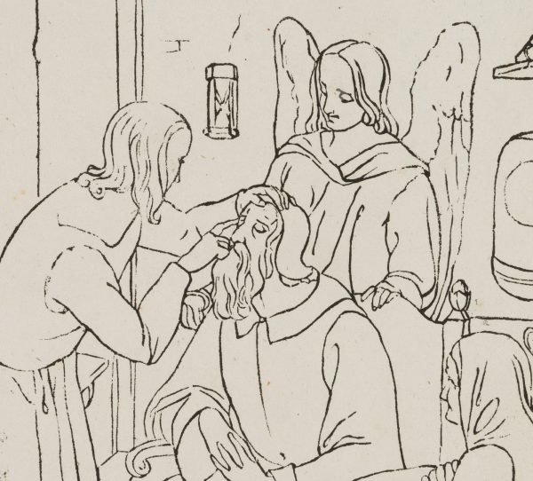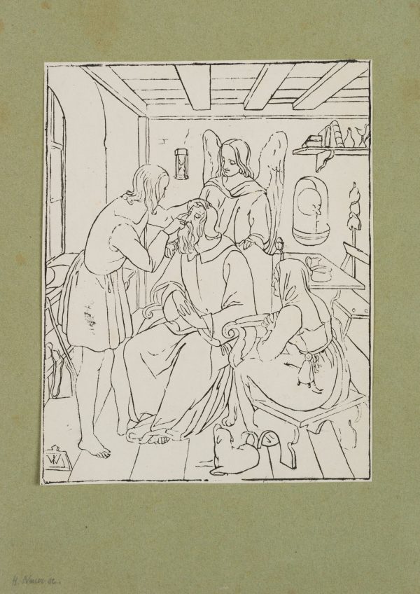 - Bezeichnung: Unten links auf der Unterlage bezeichnet “H. Neuer sc.”. Jesus heilt den im Neuen Testament erwähnten blinden Bettler aus Jericho aufgrund seines besonderen Glaubens (Markus 10, 46-52).