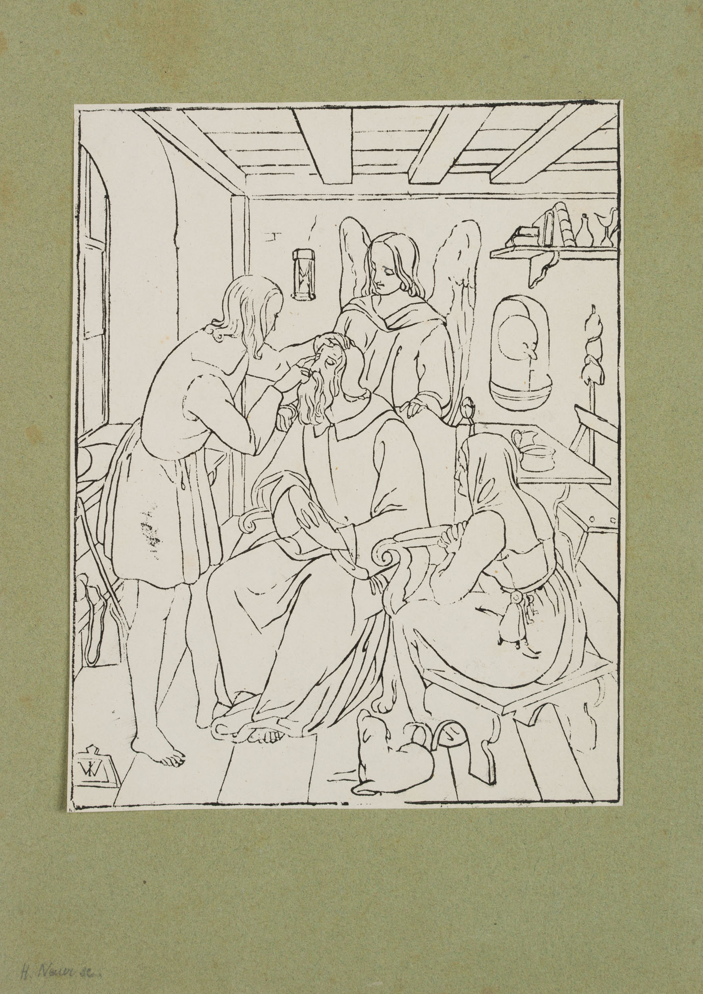 Heinrich Neuer (born 1808 Munich), Jesus heals the blind Bartimaeus, 19th century, Woodcut