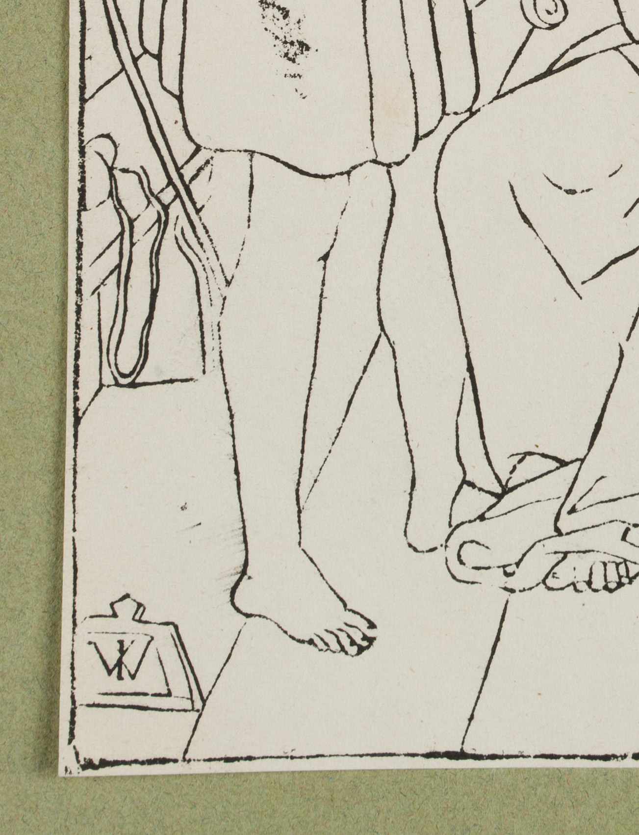 - Technik: Holzschnitt auf Papier, montiert auf Papier