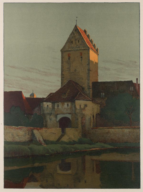 Hermann Petzet (1860 Bonnland – 1935 Munich), Am Stadttor, view of the field side of the Rothenburg Gate in Dinkelsbühl, , Colour lithography