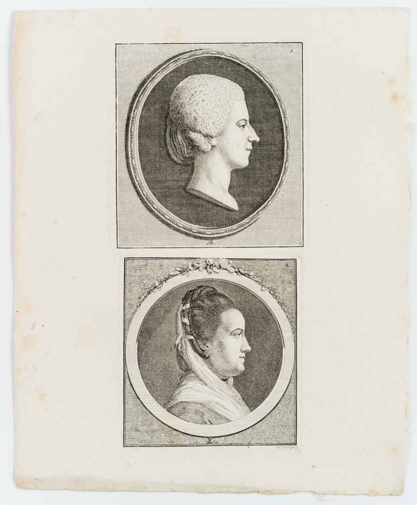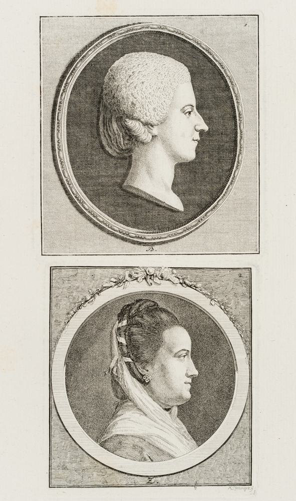 Heinrich Pfenninger (1749 Zurich – 1829 ), Double portrait of two ladies “B” and “Z, c. 1775, Etching