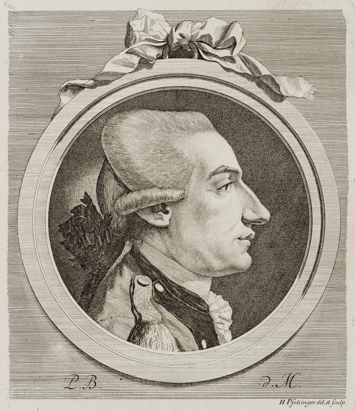 Heinrich Pfenninger (1749 Zürich – 1829 ), Porträt des Offiziers Peter Balthasar von Muralt (2), um 1775, Radierung