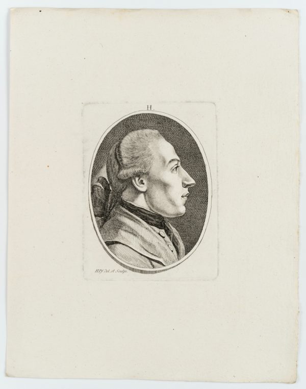 Heinrich Pfenninger (1749 Zürich – 1829 ), Porträt eines jungen Mannes “H”, um 1775, Radierung