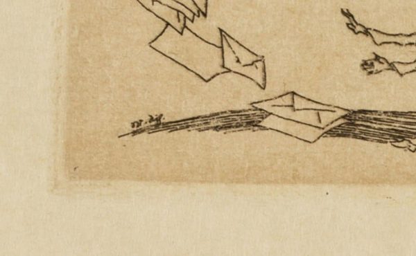 - Zustand: Sehr guter Zustand. Der Druck erscheint frisch. Der untere Blattrand trägt Bereibungsspuren und einen kurzen Einriss.