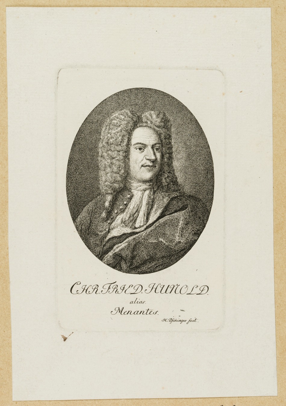 - Inscription: Signed lower right: “H. Pfenninger fecit. Inscribed lower centre: “CHR.FRIED.HUNOLD. /alias. /Menantes”.