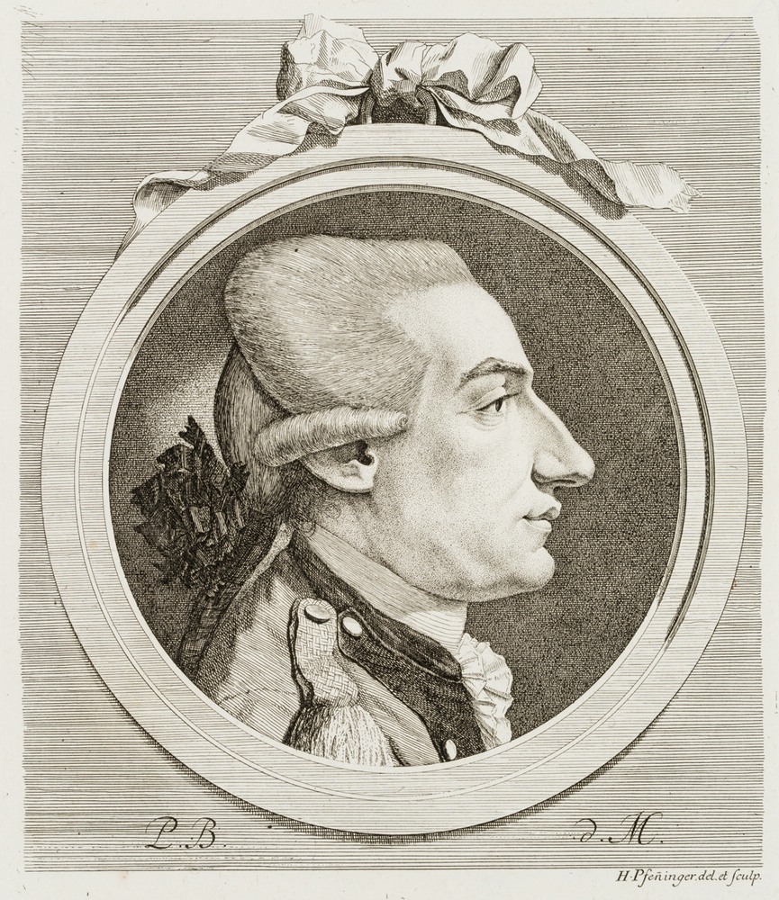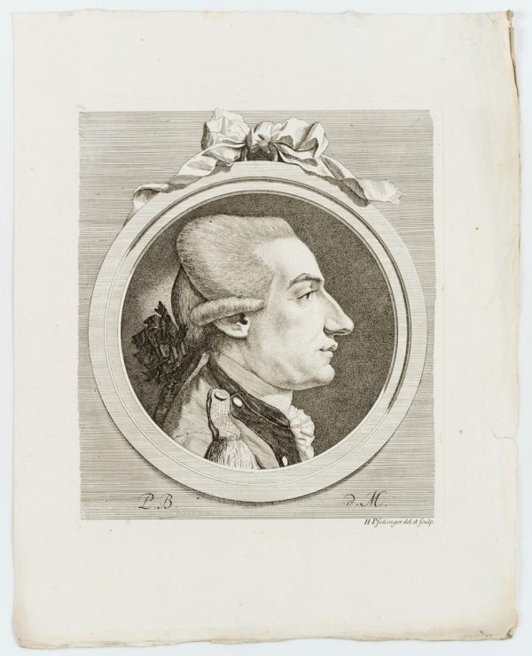 Heinrich Pfenninger (1749 Zürich – 1829 ), Porträt d. Offiziers Peter Balthasar von Muralt, um 1775, Radierung
