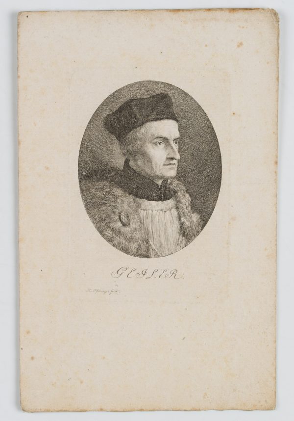 Heinrich Pfenninger (1749 Zürich – 1829 ), Bildnis des deutschen Predigers Johann Geiler von Kaysersberg (1445 Schaffhausen – 1510 Straßburg), um 1800, Radierung