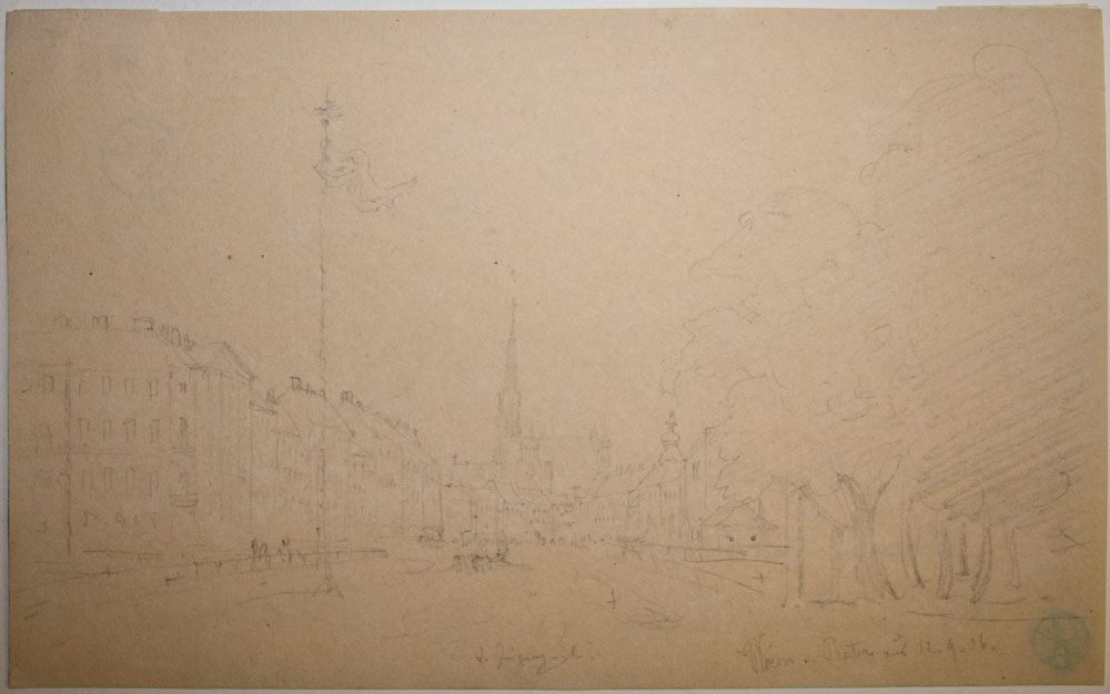 H. Schönfeld (1809 – 1845 ), Vienna from the Prater 1836, 1836, Pencil