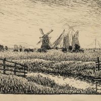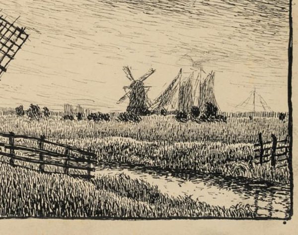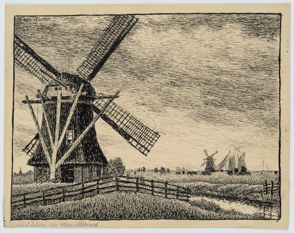 H. von Seggern (19th century), Mill in the Marsh, c. 1910, Pen drawing