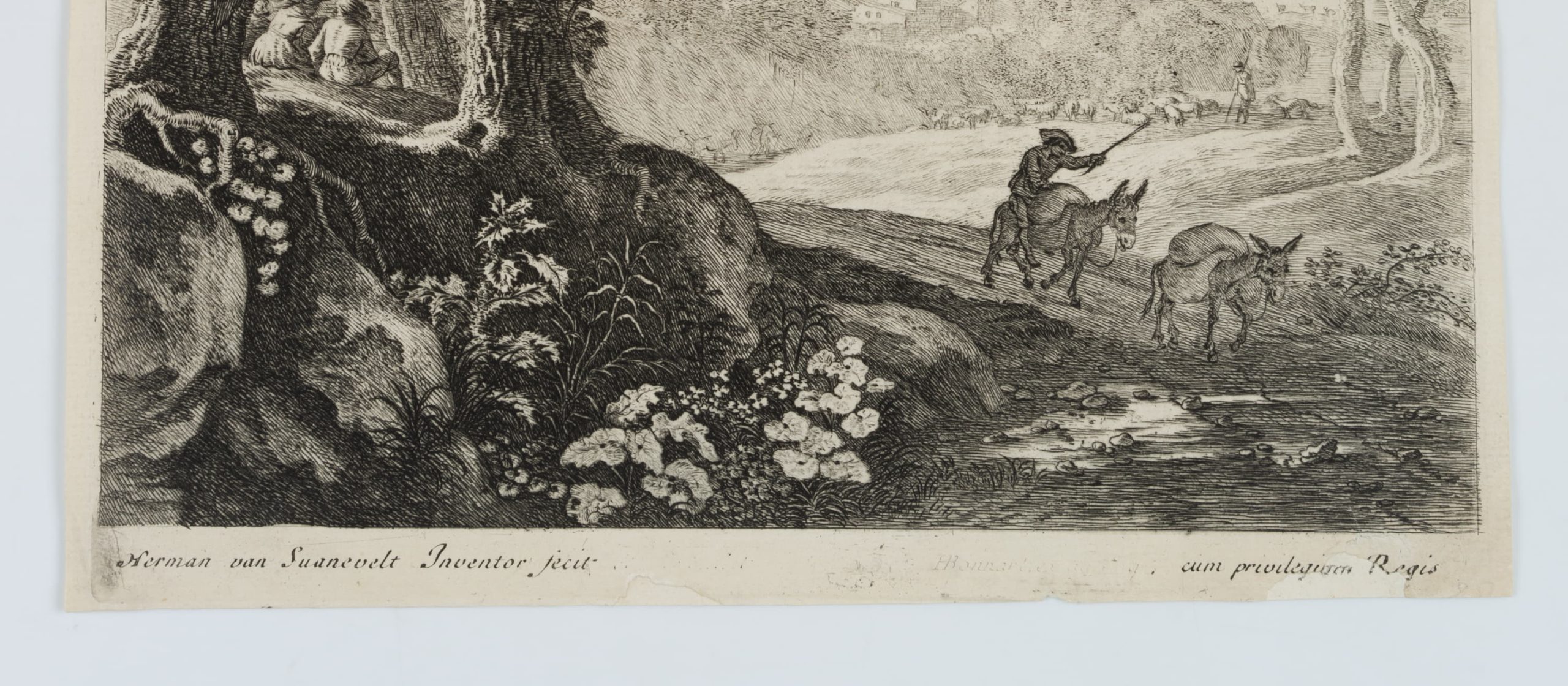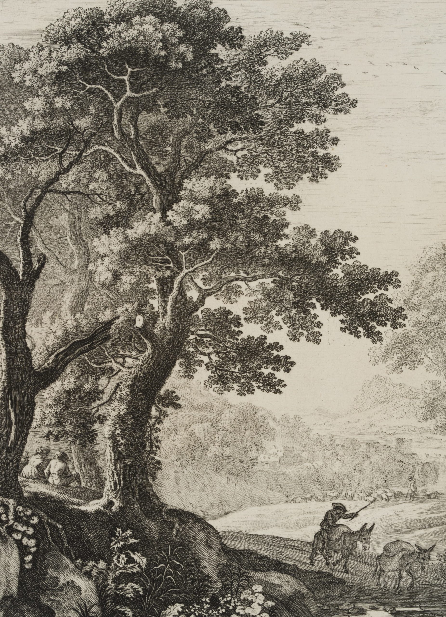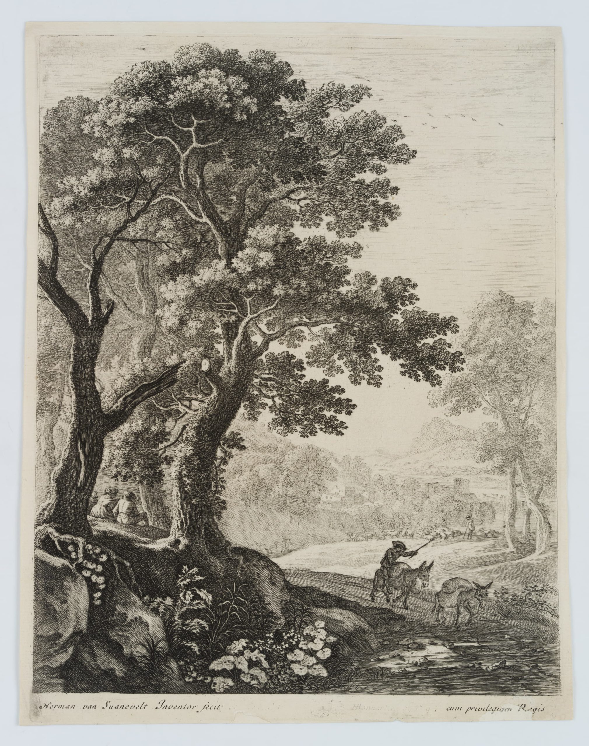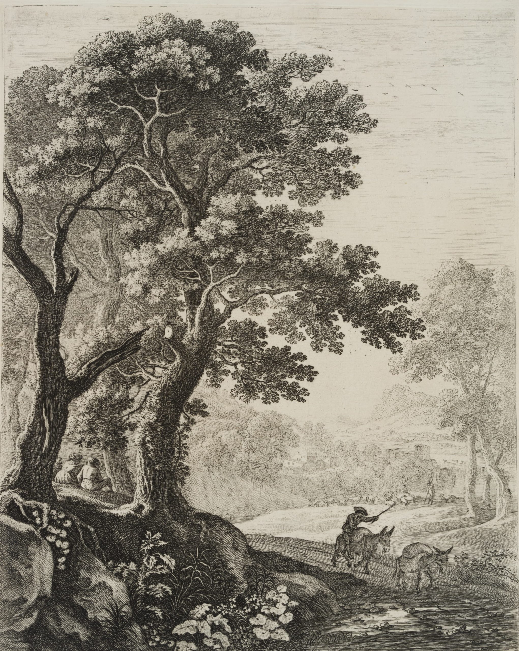 Herman van Swanevelt (um 1600 Woerden – 1655 Paris), Landschaft mit Eseltreiber, um 1630, Kupferstich