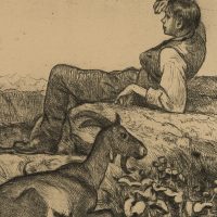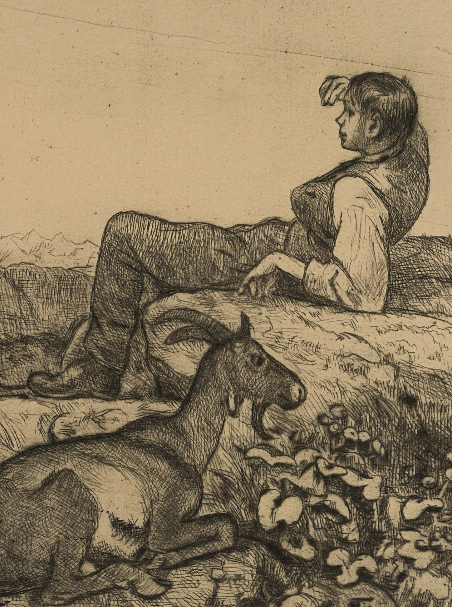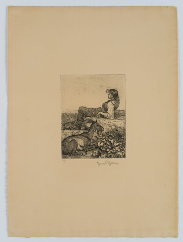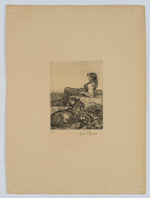 Hans Thoma (1839 Bernau – 1924 Karlsruhe), On the heights Boy with goat, 1920, Etching