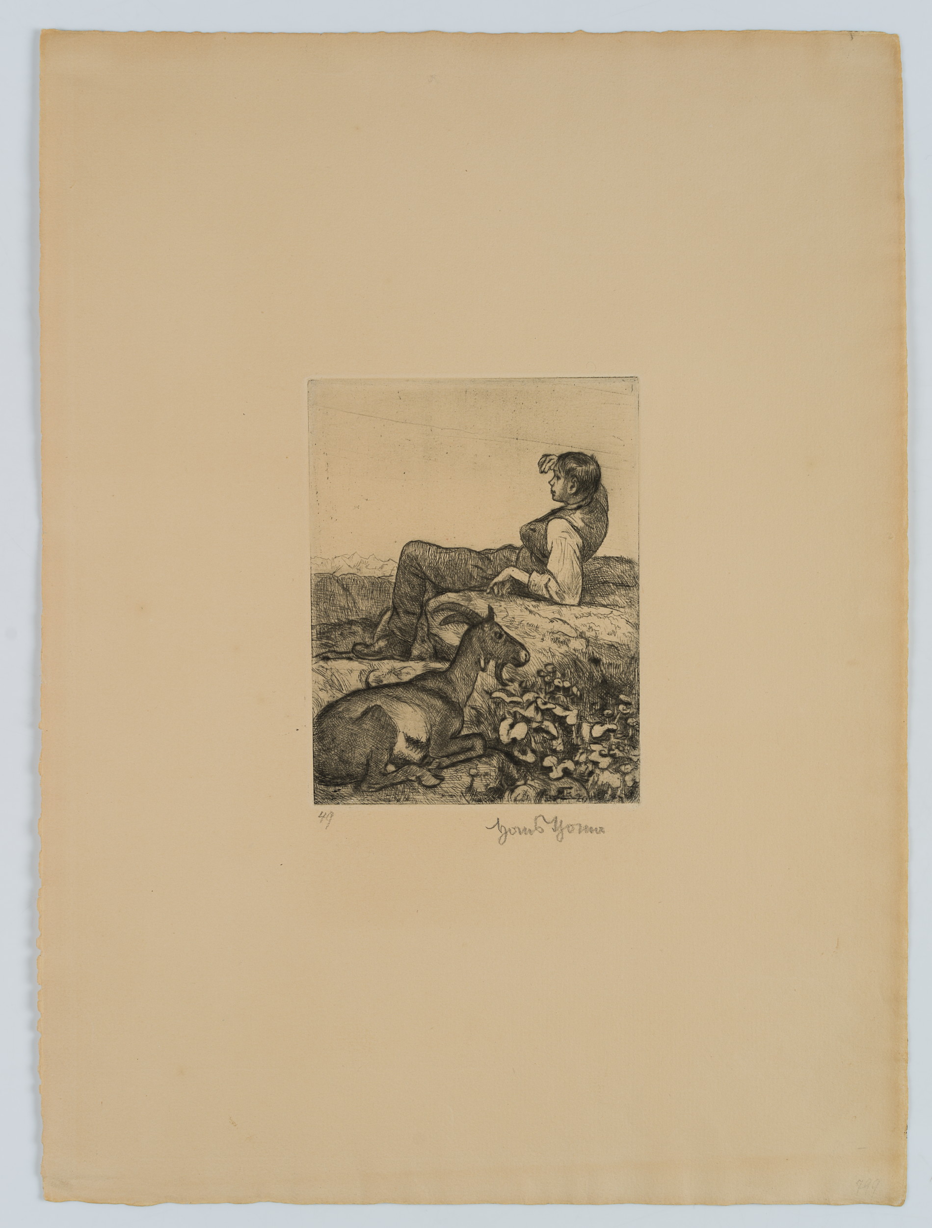 Hans Thoma (1839 Bernau – 1924 Karlsruhe), Auf der Höhe. Junge mit Ziege, 1920, Radierung