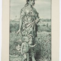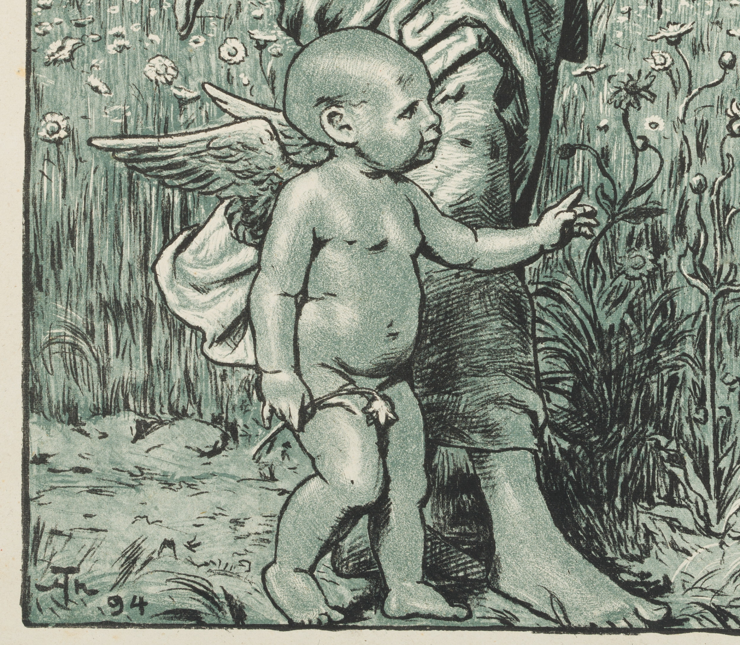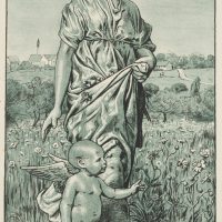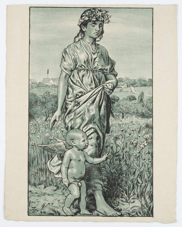 Hans Thoma (1839 Bernau – 1924 Karlsruhe), Flora, Flower Girl with Cupid, 1894, Lithography