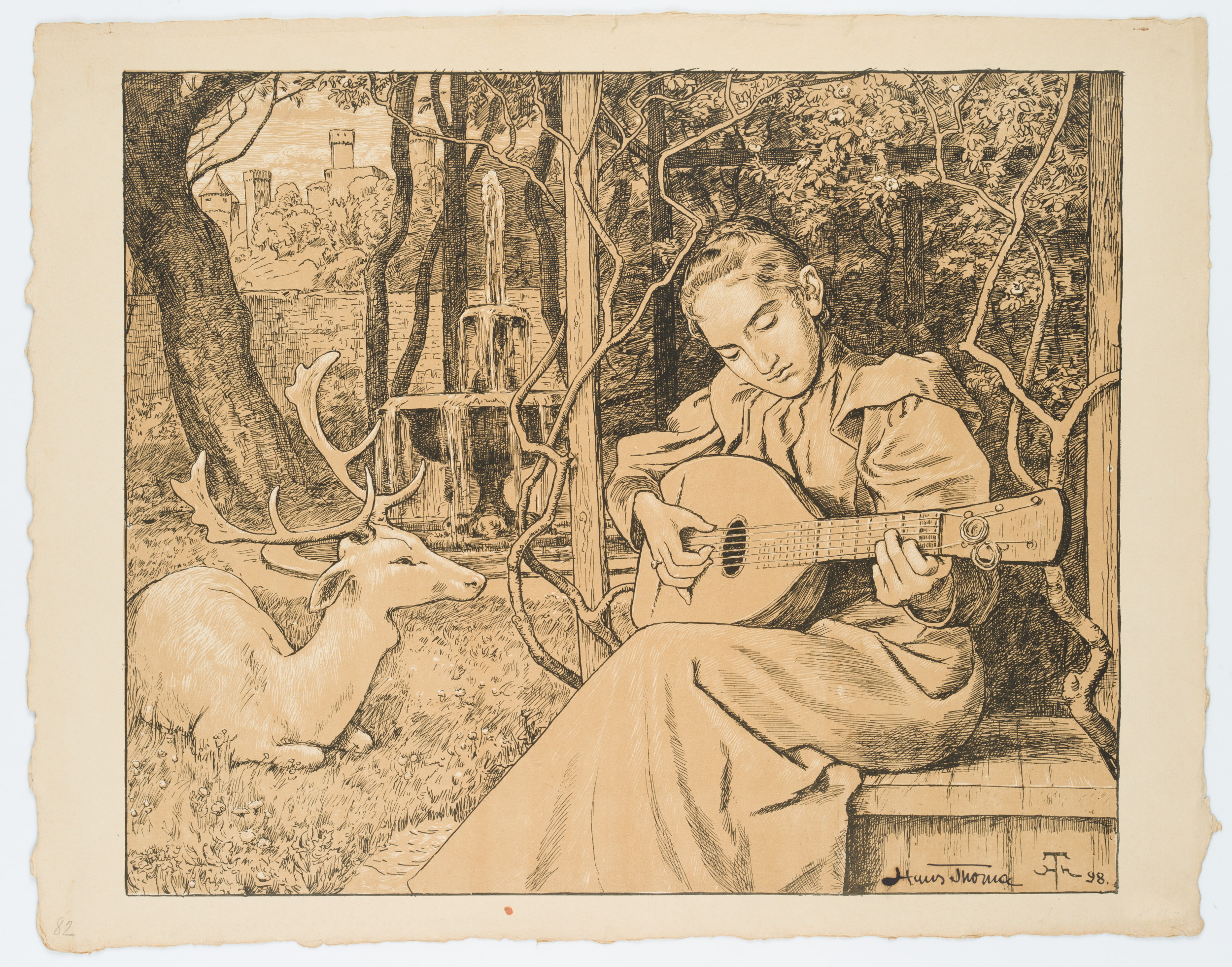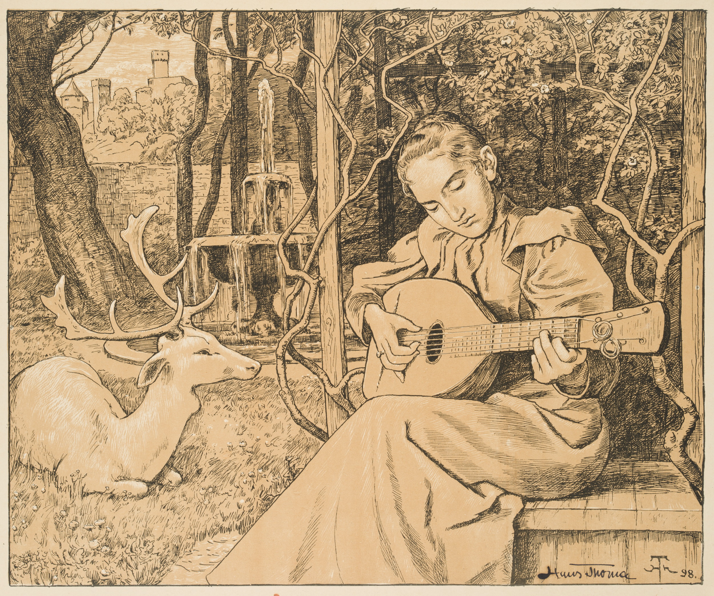 - Keywords: Music, Guitar, Lute, Deer, Fallow deer, Garden, Paradise, 19th century, Symbolism, Music, Germany,