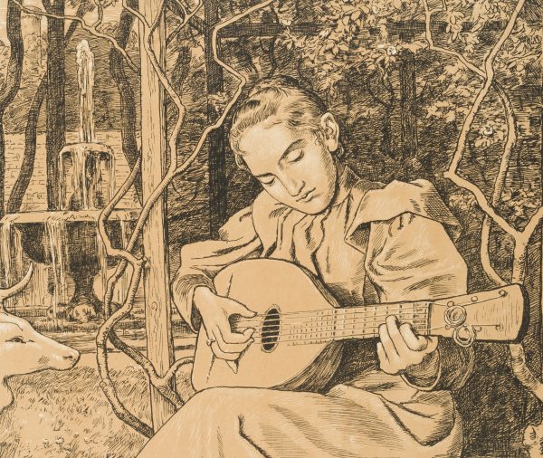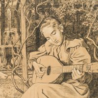 Hans Thoma (1839 Bernau – 1924 Karlsruhe), Guitar player, lute player, 1898, Algraphy