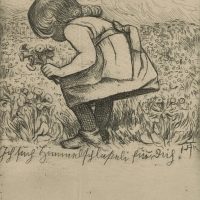 Hans Thoma (1839 Bernau – 1924 Karlsruhe), Himmelsschlüsselchen I’m looking for heavenly keys for you, 1913, Etching