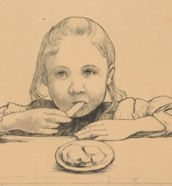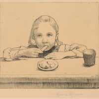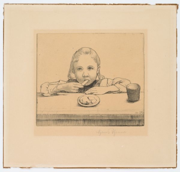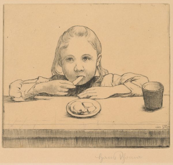 Hans Thoma (1839 Bernau – 1924 Karlsruhe), Child at breakfast, 1910, Etching