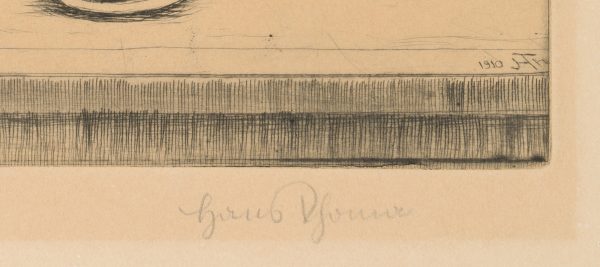 - Bezeichnung: Unten rechts signiert: “Hans Thoma”, darüber im Druck monogrammiert: “Hth”. Unten rechts datiert: “1910”.