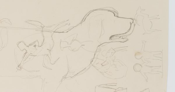 Hans Thoma (1839 Bernau – 1924 Karlsruhe), Study Sheet with Dog and Zodiac Sign, , Pencil